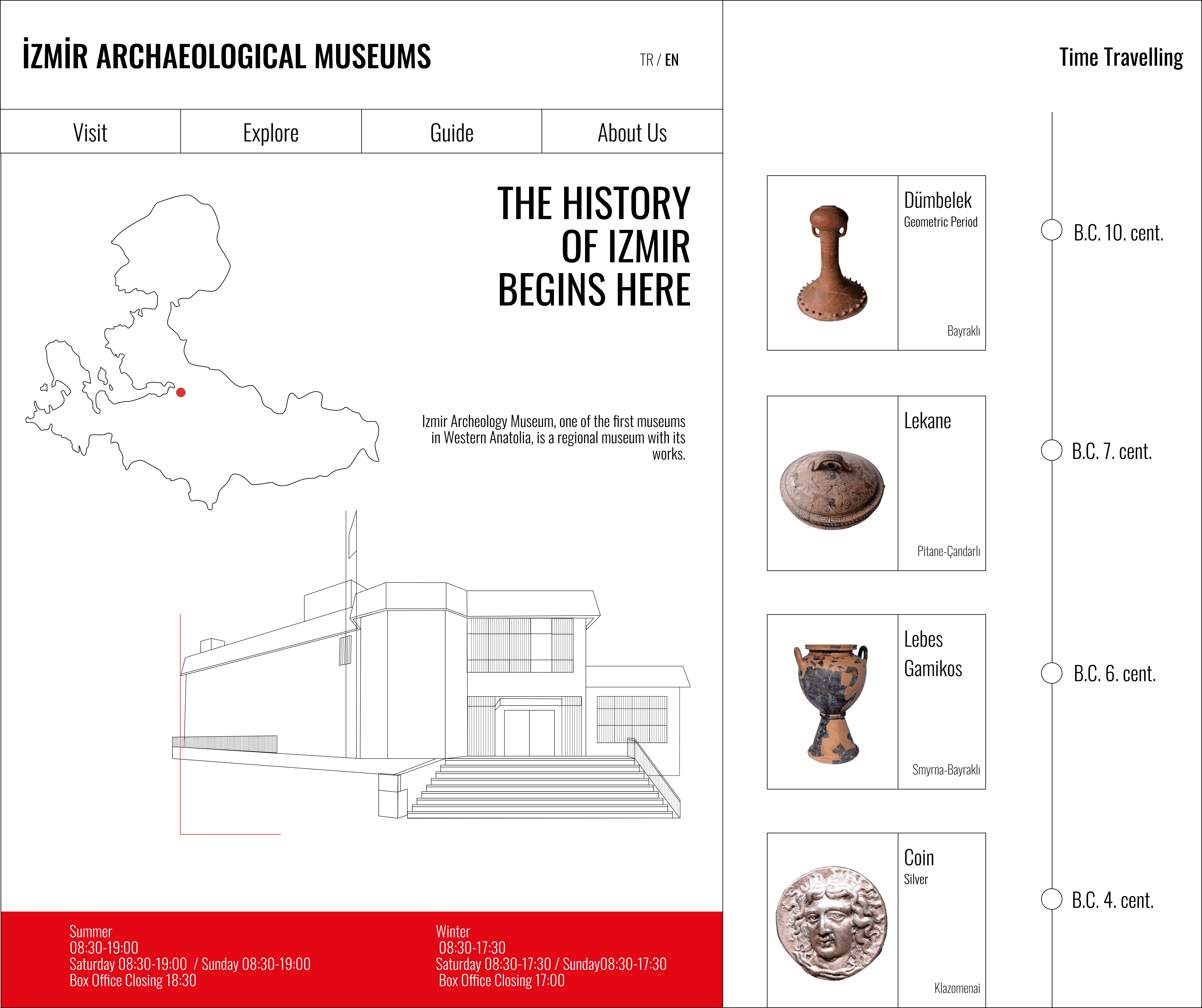 A conceptual website redesign for the İzmir Archaeological Museum, focused on presenting historical content through structure, chronology, and spatial clarity.